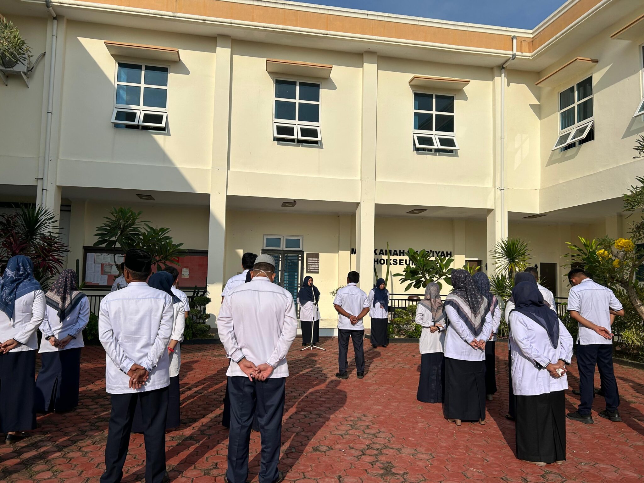 Dalam amanatnya, Ibu Putri Munawarah, S.Sy., M.H. menekankan pentingnya menjaga konsistensi kebersihan lingkungan kerja secara komprehensif. Beliau menegaskan bahwa standar kerapian dan kebersihan yang telah terjaga di dalam ruangan kantor harus linear dengan kondisi di area luar. Menurutnya, lingkungan yang tertata rapi merupakan cerminan profesionalisme lembaga dalam memberikan pelayanan prima bagi masyarakat pencari keadilan.