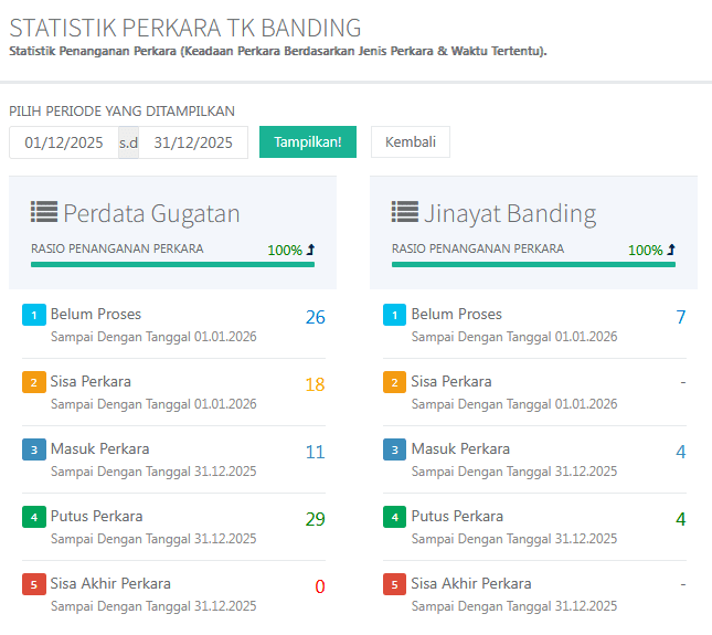 Statistik Perkara Mahkamah Syar’iyah Aceh Desember 2025
